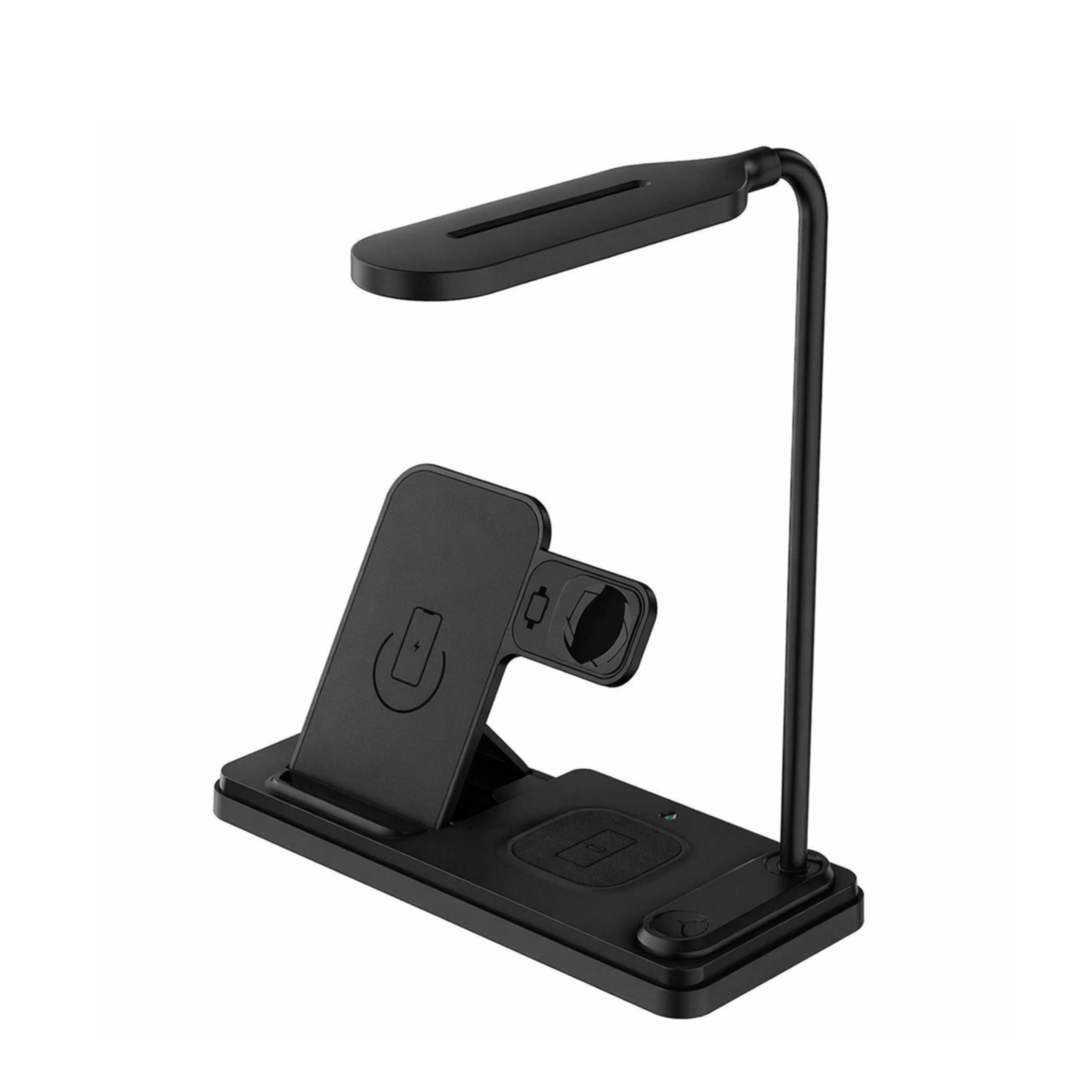 Die Ladestation ist eine vielseitige 3in1-Lösung aus kabelloser Ladestation, LED-Tischlampe und Smartphone-Halterung. Mit bis zu 15W Ladeleistung können gleichzeitig Smartphone, Smartwatch und Kopfhörer bequem geladen werden.