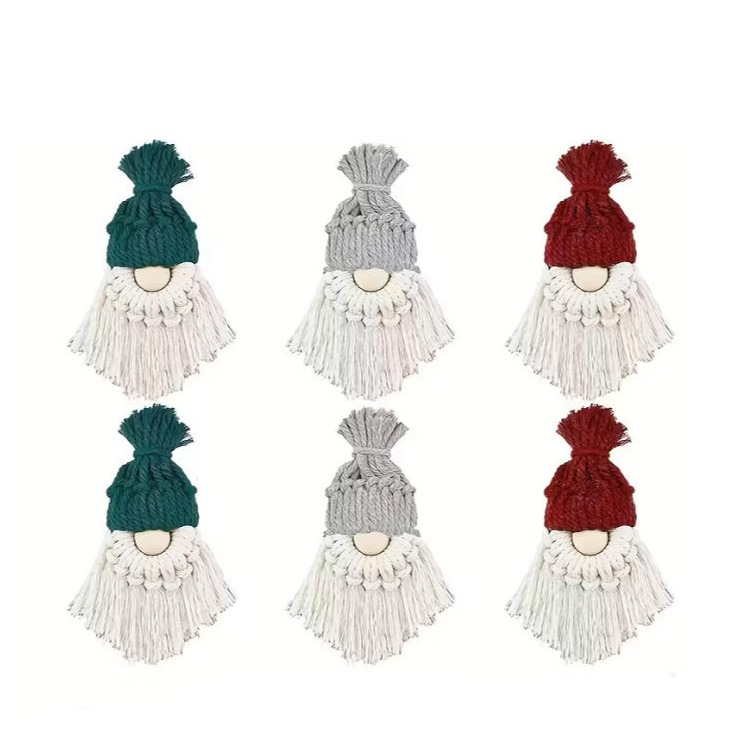 (16-tlg. Set) DIY Makramee Weihnachts Wichtel Anhänger Boho Deko Bastel Zubehör inkl. Holz Perlen - Grau / Grün / Rot