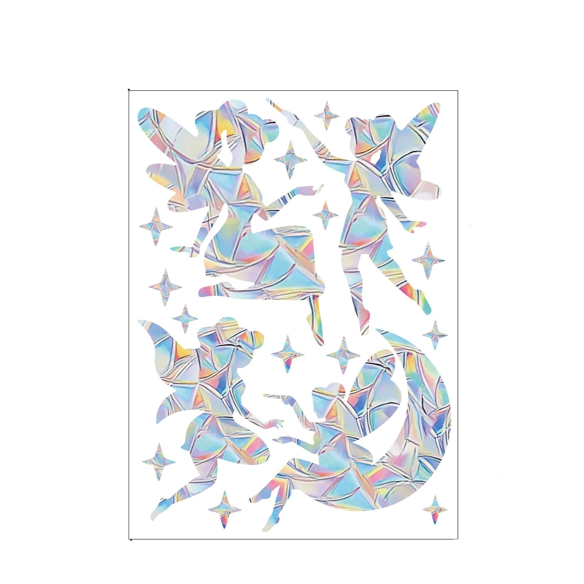 (16er Set) Holographische Fenster Folien Aufkleber Kinderzimmer Deko Prisma Suncatcher Sticker - Fee