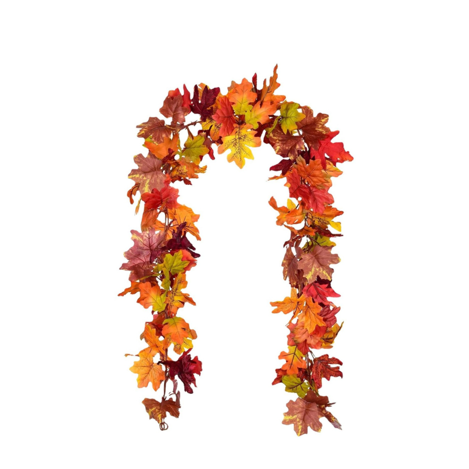 (175cm) Deko Kunst Ahorn Blätter Herbstlaub Girlande - Orange / Rot / Grün