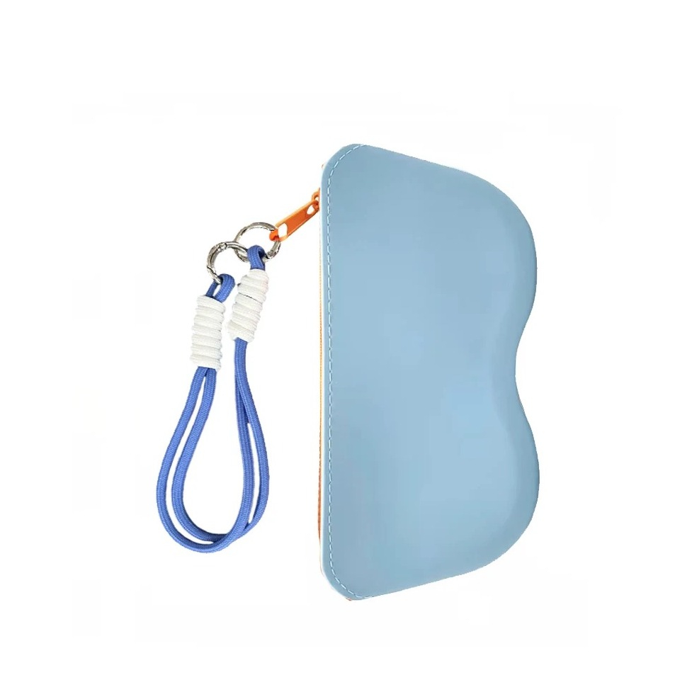 (175x75mm) Silikon Brillenetui Tasche mit Handgelenk Band für Unterwegs inkl. Putztuch - Hellblau