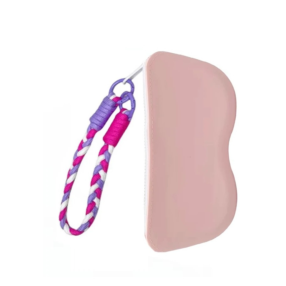 (175x75mm) Silikon Brillenetui Tasche mit Handgelenk Band für Unterwegs inkl. Putztuch - Rosa