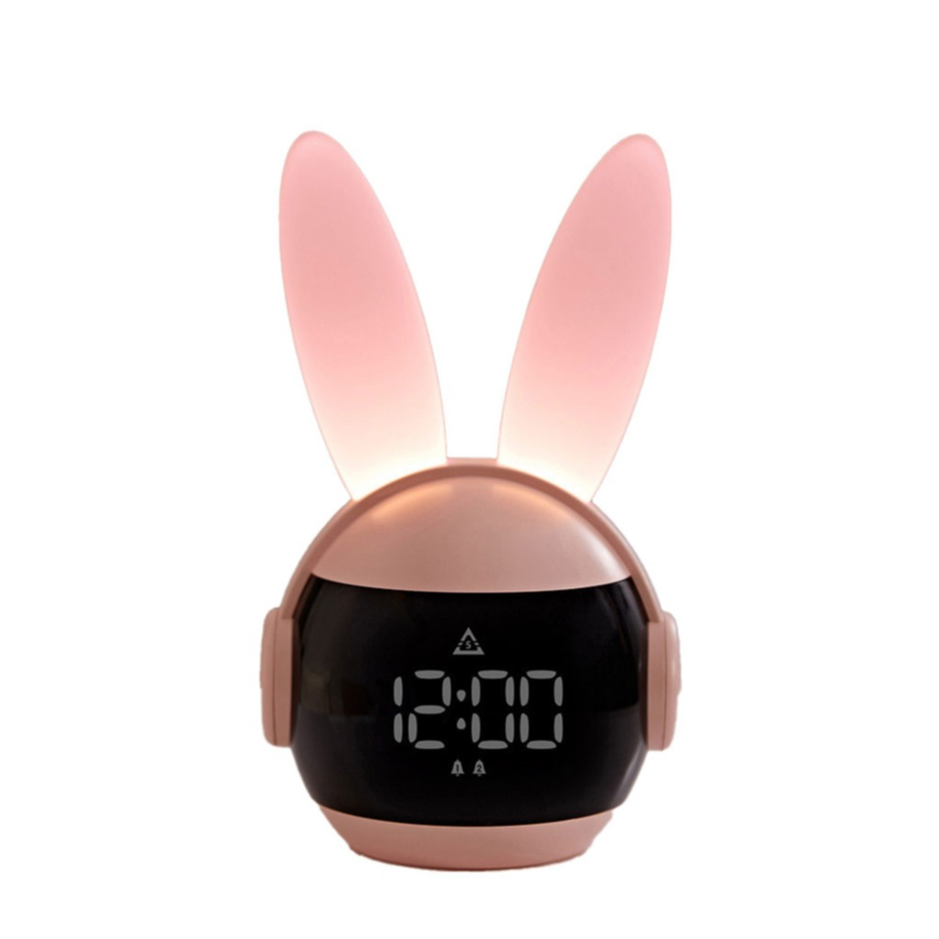 (17x10cm) Silikon Wecker Kinder LED Nachtlicht Hasen Uhr - Rosa