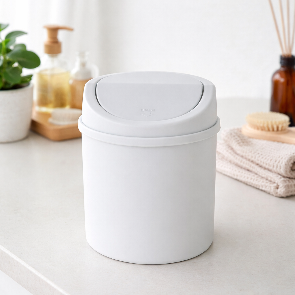 Der Mini Mülleimer eignet sich bestens, um ihn auf den Tisch im Büro zu stellen und so deinen Müll sauber zu entsorgen. Du kannst den Eimer aber auch als Biomüll Kompost in der Küche oder um die Kosmetikabfälle im Bad wegzuschmeissen, benutzen. Dank des praktischen Schwingdeckels, kannst du den Abfall Behälter mit nur einer Hand bedienen, was sich ideal für während dem Kochen oder Putzen eignet.