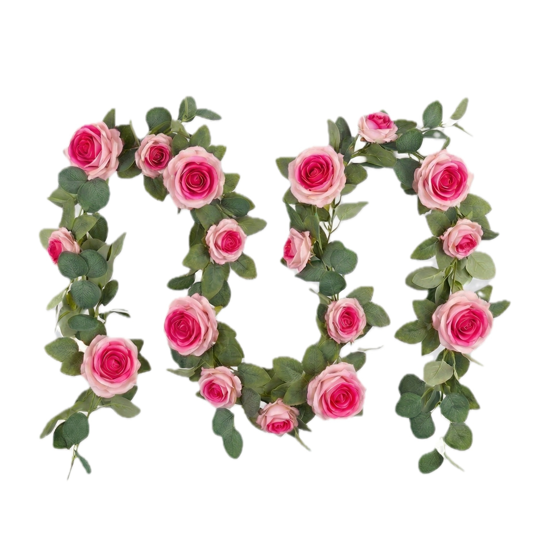 (180cm) Deko Kunstblumen Rosen Girlande - Rosa / Pink
