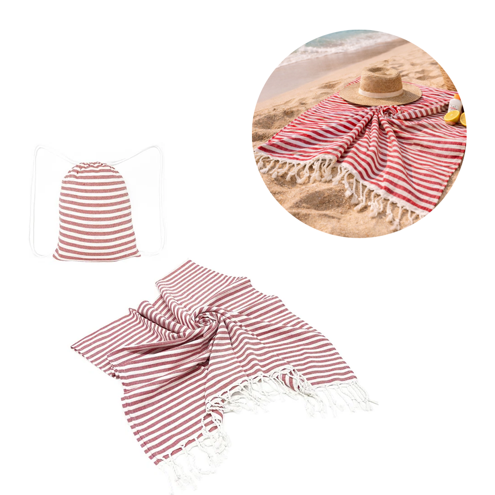Dieses grosszügige Baumwoll Strandtuch im klassischen Streifen Design ist der ideale Begleiter für Strand, Pool oder Wellness. Das leichte Badetuch im traditionellen Pestemal Stil überzeugt durch sein dünnes, schnelltrocknendes Material und lässt sich besonders kompakt zusammenfalten. Das Beach Tuch bietet ausreichend Platz zum Liegen, Abtrocknen oder als leichte Decke an kühleren Abenden. Die dekorativen Tasseln verleihen dem Tuch einen sommerlichen Look und machen es zu einem stilvollen Accessoire. Dank der mitgelieferten Aufbewahrungstasche kannst du es einfach transportieren und sauber verstauen. Ob im Urlaub, beim Camping oder im Schwimmbad, dieses vielseitige Tuch ist immer eine praktische Wahl.