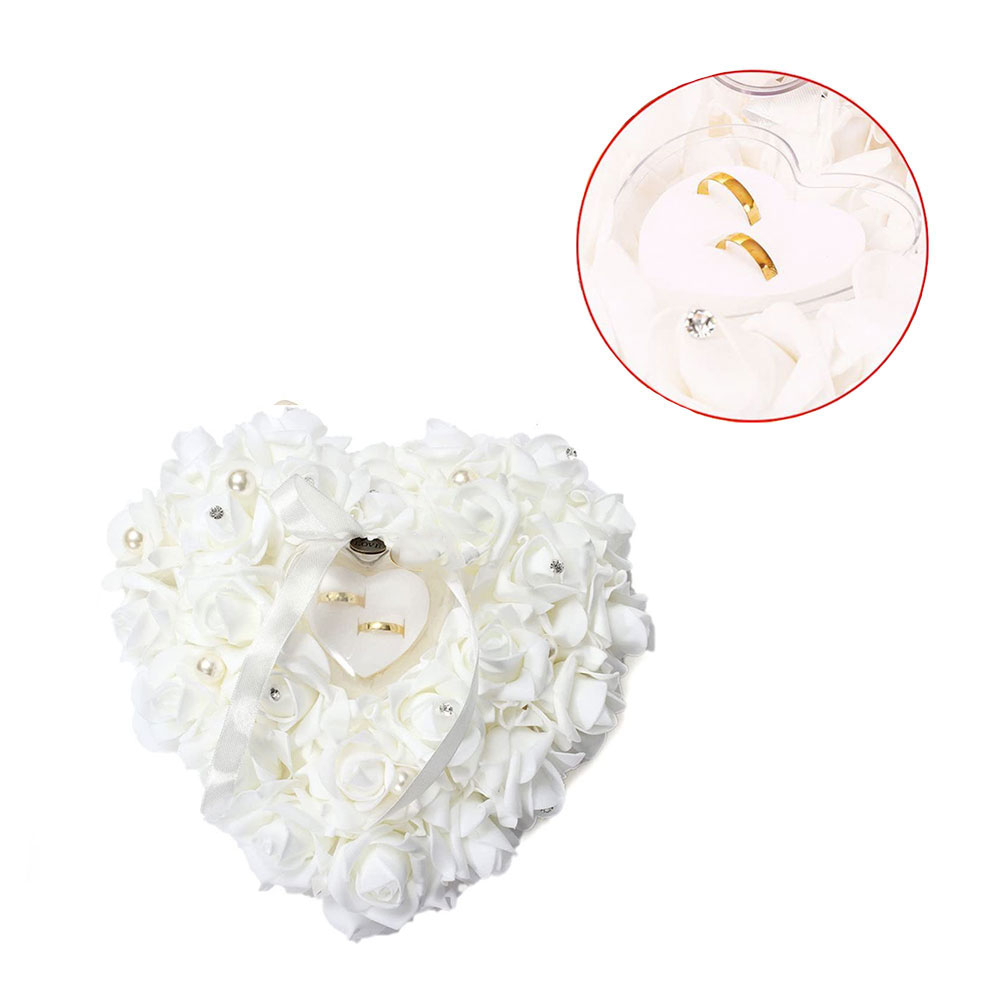 (18x18cm) Rosen Herz Ringschatulle Schmuck Organizer Box für Hochzeits Ringe - Weiss