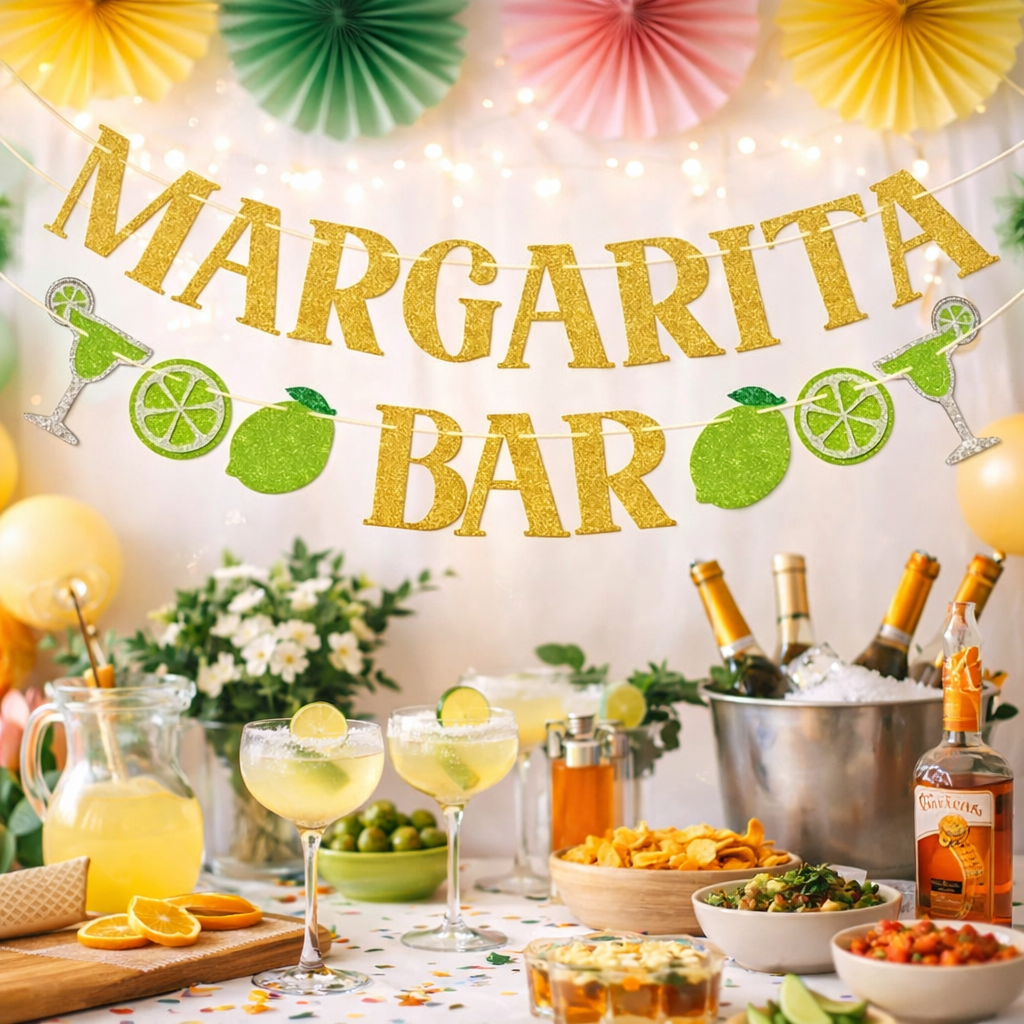 (19-tlg. Set) Margarita Bar Girlande Glitzer Party Dekoration Sommer Accessoire Banner - Gold / Grün