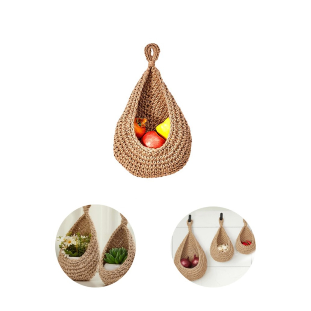 (19x13cm) Hängender Jute Wand Korb Home Accessoire Deko Organizer für Obst / Gemüse / Pflanzen - Braun