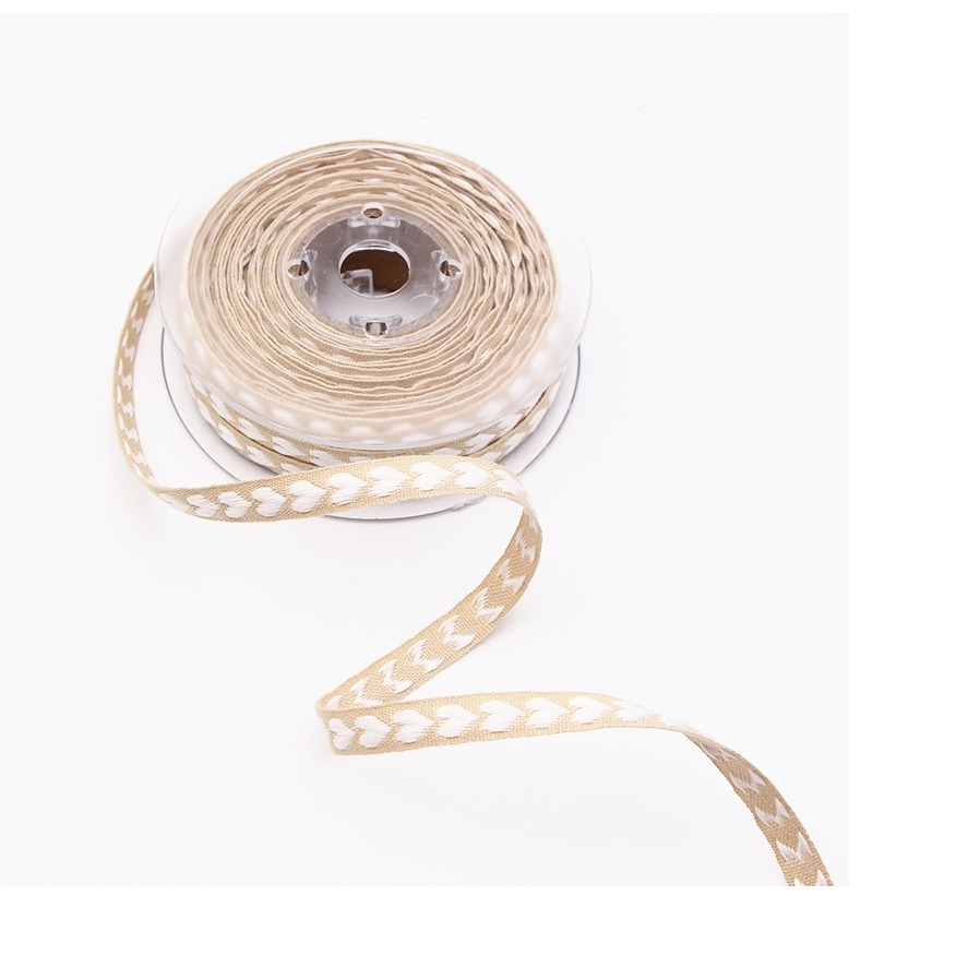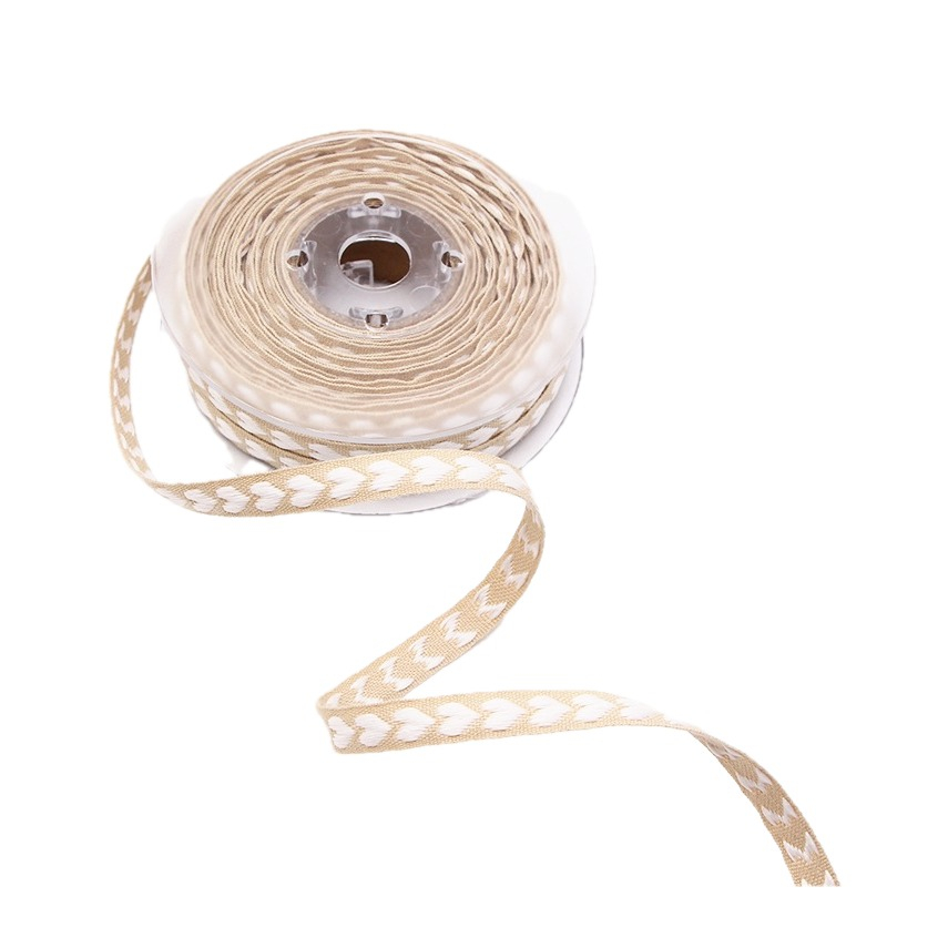 (1cmx10m) Geschenkband Stoff Deko Band mit Herz Stick - Beige / Weiss