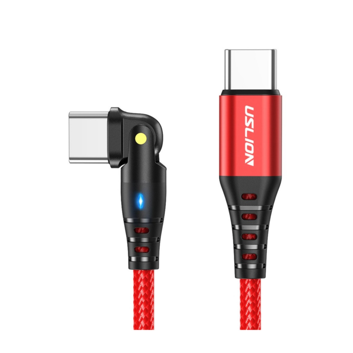 (1m) 60W USB C auf USB C 180 Grad Winkel Ladekabel Nylon Datenkabel mit LED - Rot