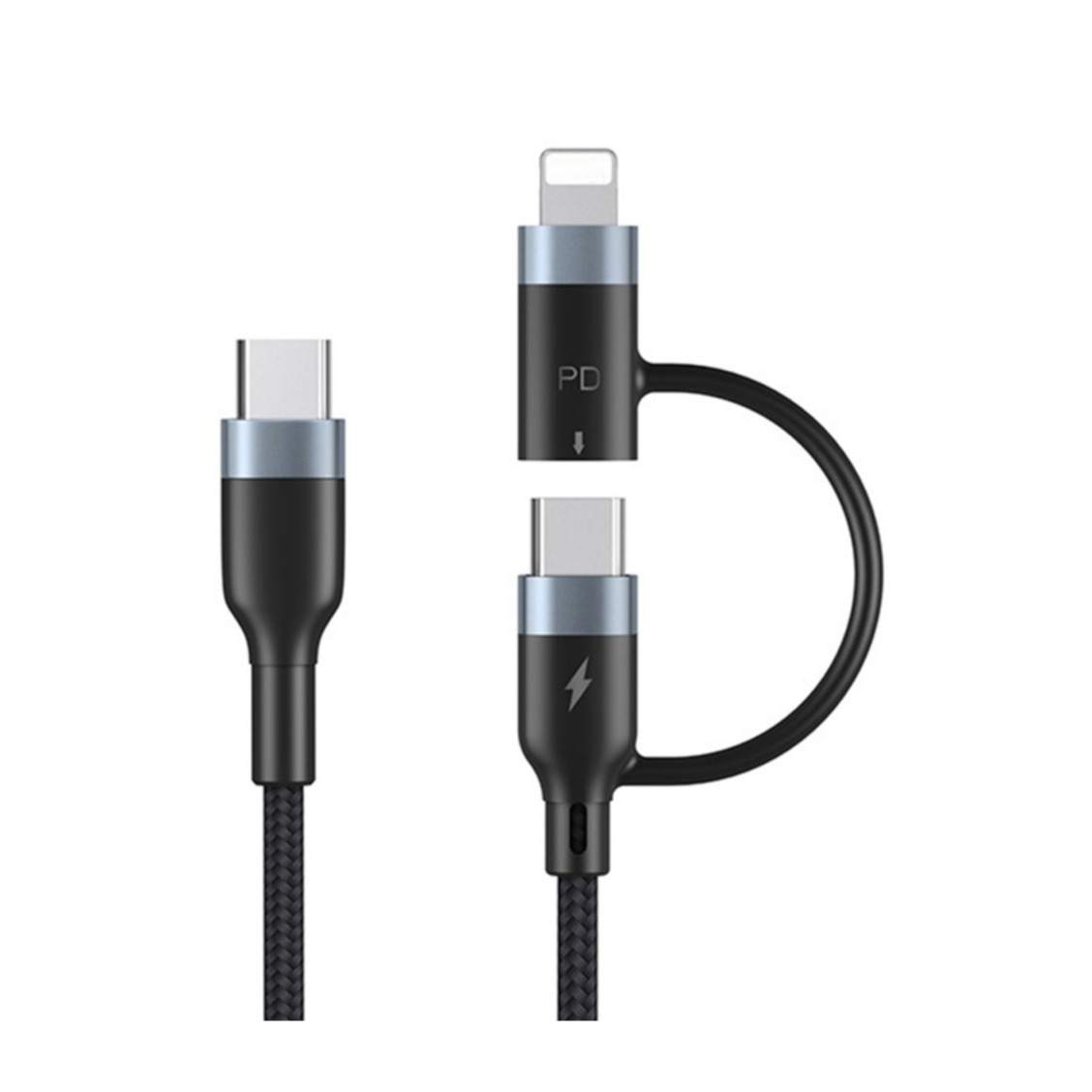 (1m) Robustes 2in1 USB C + Lightning 60W PD Schnellladekabel Datenkabel Nylon - Schwarz