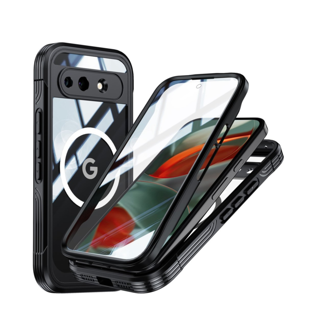 (2-tlg.) Google Pixel 10a Hybrid TPU Hülle mit Displayschutzfolie MagSafe-Modul - Schwarz / Transparent
