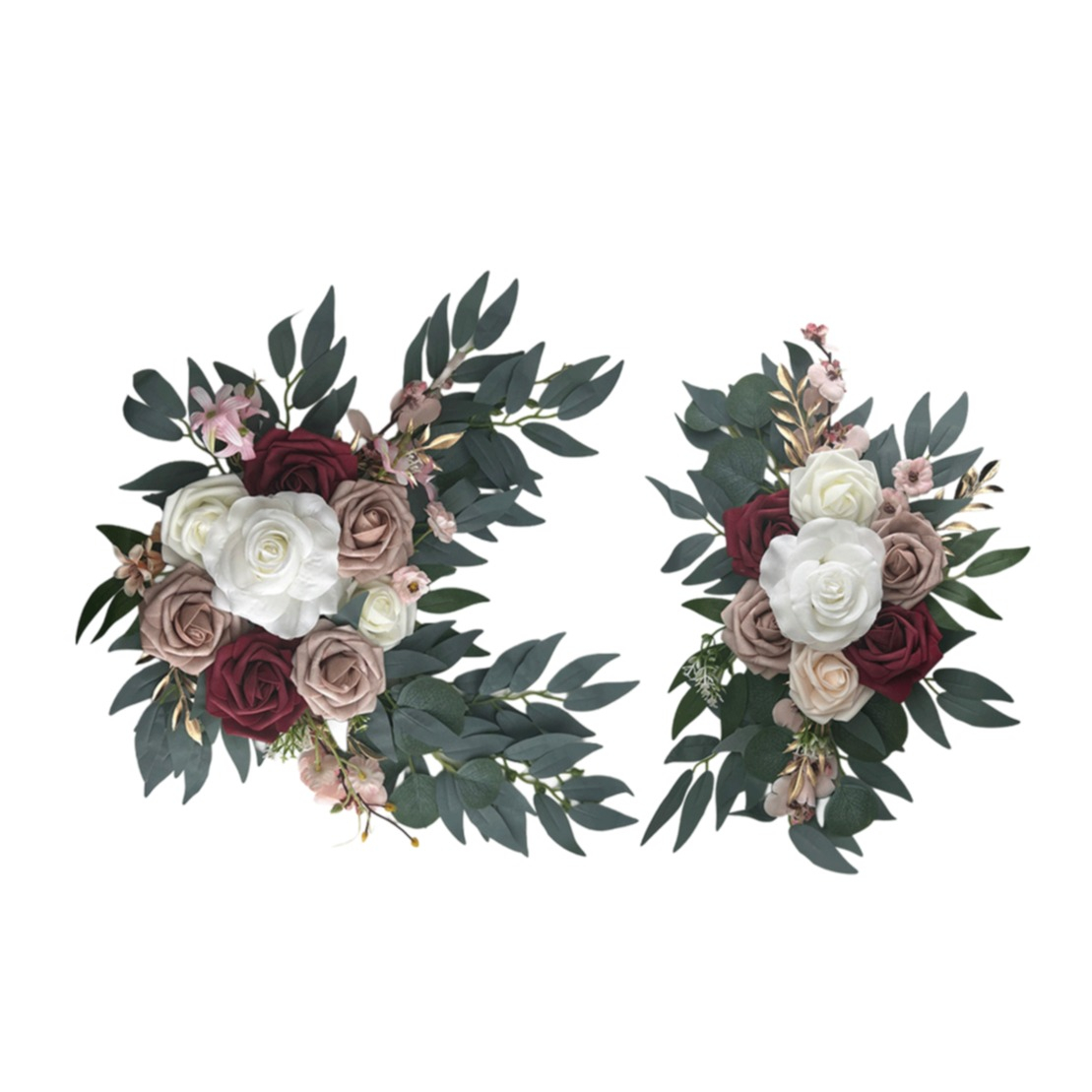 Mit diesem 2-tlg. Set Kunstblumen Gesteck bringst du im Handumdrehen frische Akzente in dein Zuhause. Die beiden Arrangements sind mit liebevoll gestalteten Rosen und anderen Blüten in Weiss / Rosa / Rot versehen und sorgen für eine elegante, blumige Atmosphäre – ganz ohne Giessen oder Verwelken.