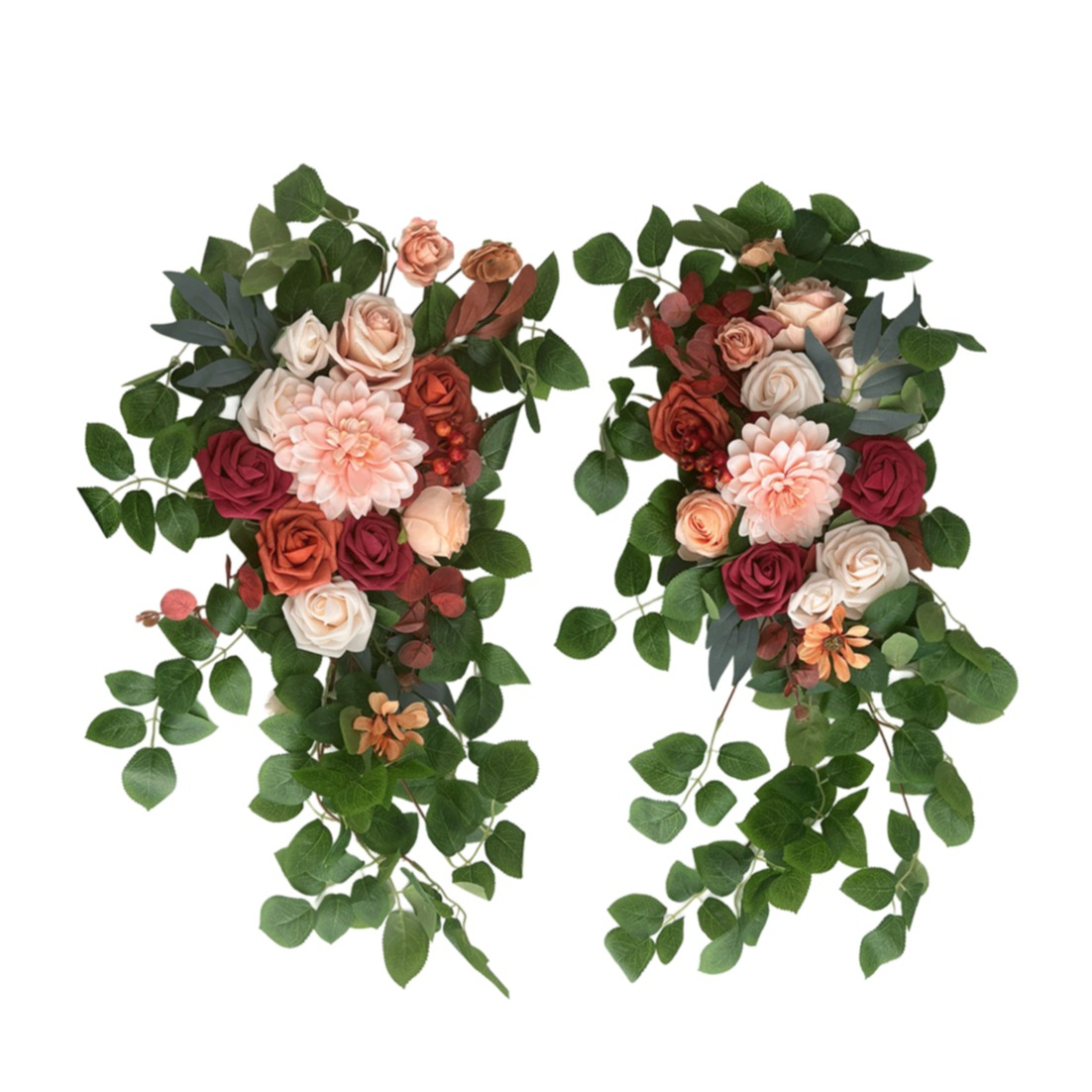 Mit diesem 2er Set Kunstblumen Gesteck bringst du im Handumdrehen frische Akzente in dein Zuhause. Die beiden Arrangements sind mit liebevoll gestalteten Rosen und anderen Blüten in Orange / Rosa / Rot versehen und sorgen für eine elegante, blumige Atmosphäre – ganz ohne Giessen oder Verwelken.