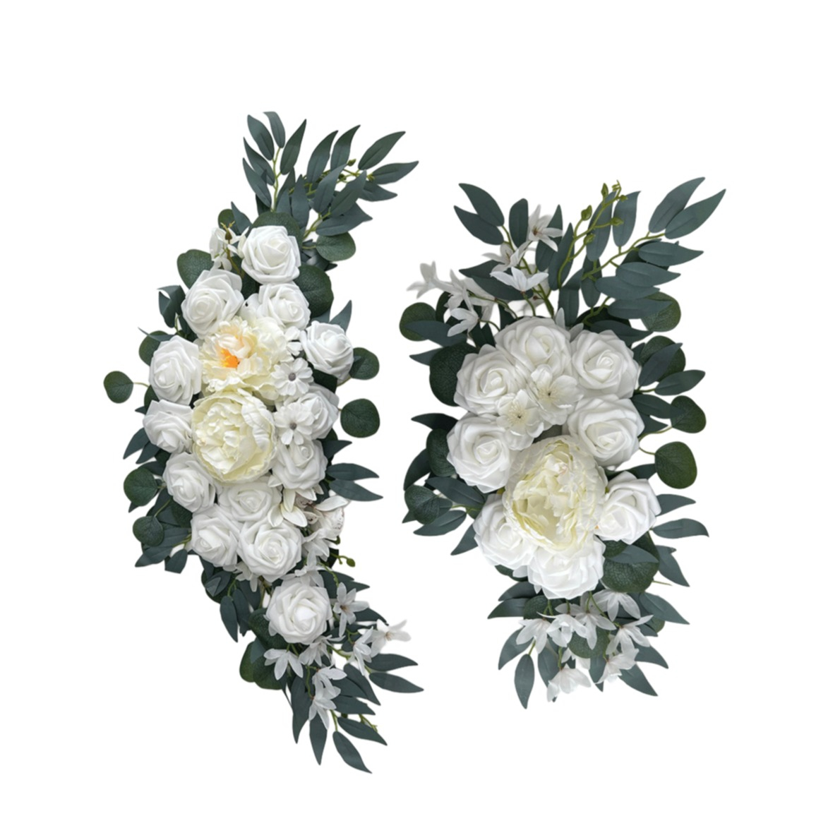 (2-tlg. Set) Deko Kunstblumen Rosen Tisch Gesteck - Weiss