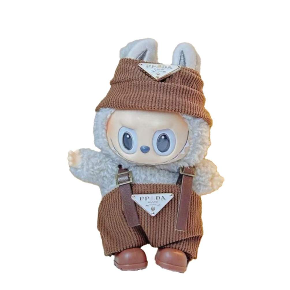 (2-tlg. Set) Monsterhäschen Cord Overall Puppen Zubehör Latzhose Outfit Verkleidungs Accessoire inkl. Hut - Braun