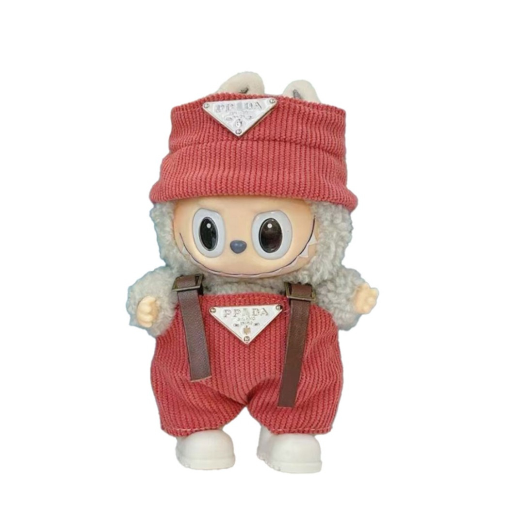 (2-tlg. Set) Monsterhäschen Cord Overall Puppen Zubehör Latzhose Outfit Verkleidungs Accessoire inkl. Hut - Rot