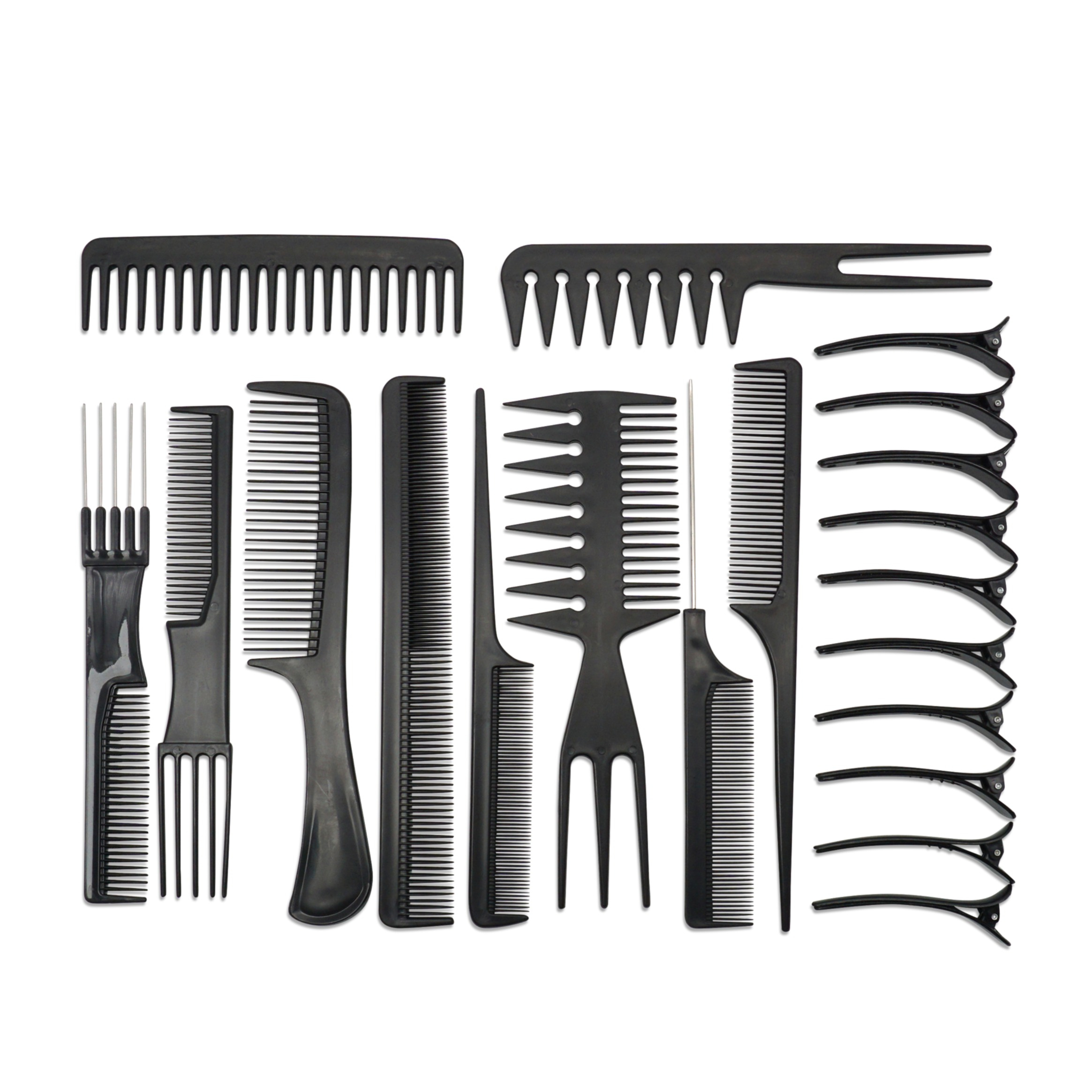 (20-tlg. Set) Antistatische Friseur Kämme Multifunktionales Haar Styling Kit - Schwarz