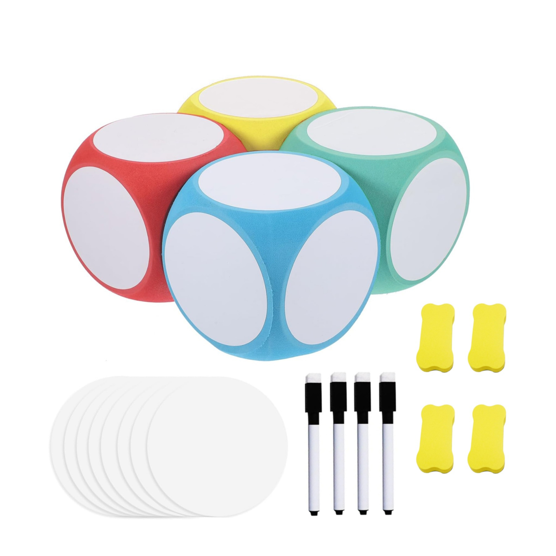 (20-tlg. Set) 10x10cm Beschreibbare Whiteboard Würfel Blanko DIY Spiel Zubehör Party Cube Würfelspiel inkl. Stifte / Schwämme / Ersatz Sticker - Bunt