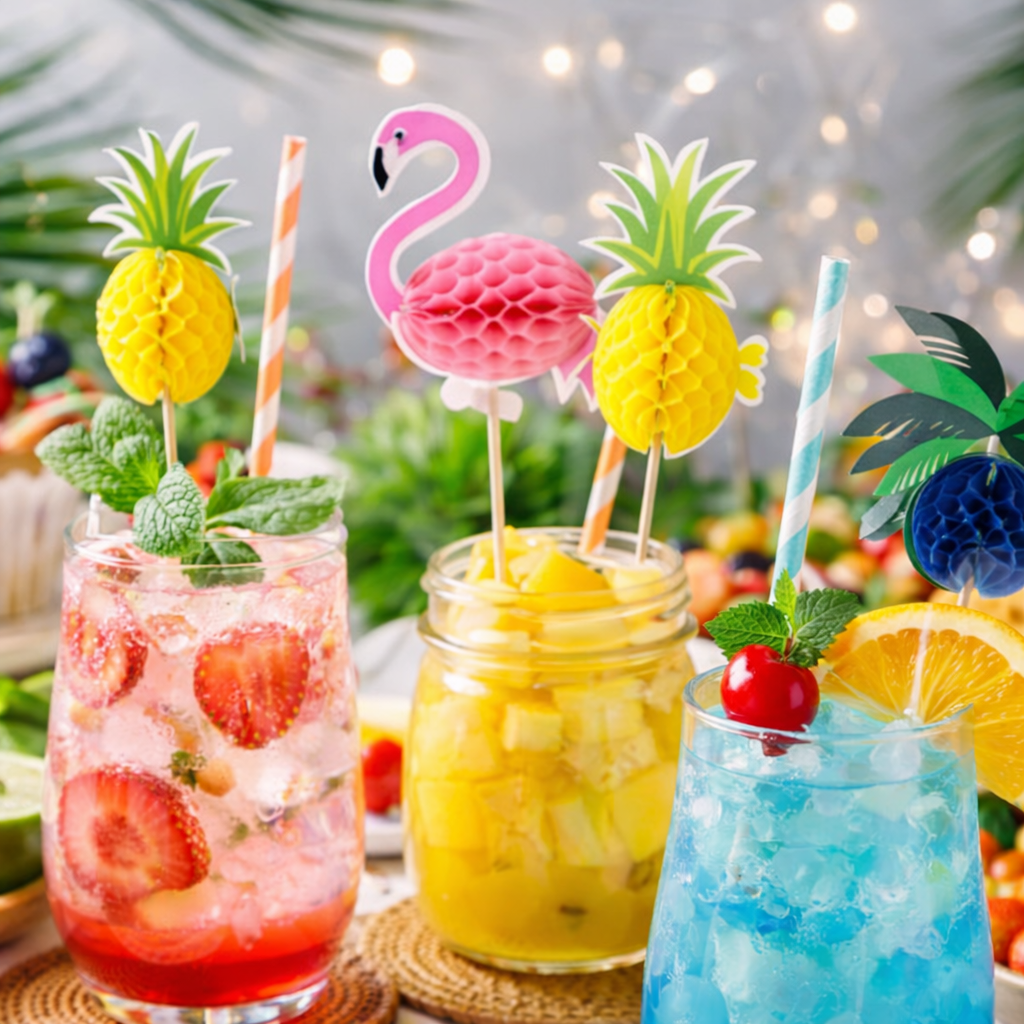 Mit diesen dekorativen Cocktail Sticks bringst du sofort tropisches Flair auf deine nächste Feier. Die liebevollen Details mit Flamingo- und Ananas-Motiven machen die Party Spiesse zu einem echten Hingucker – ideal für Sommerpartys, Gartenfeste oder Geburtstage.