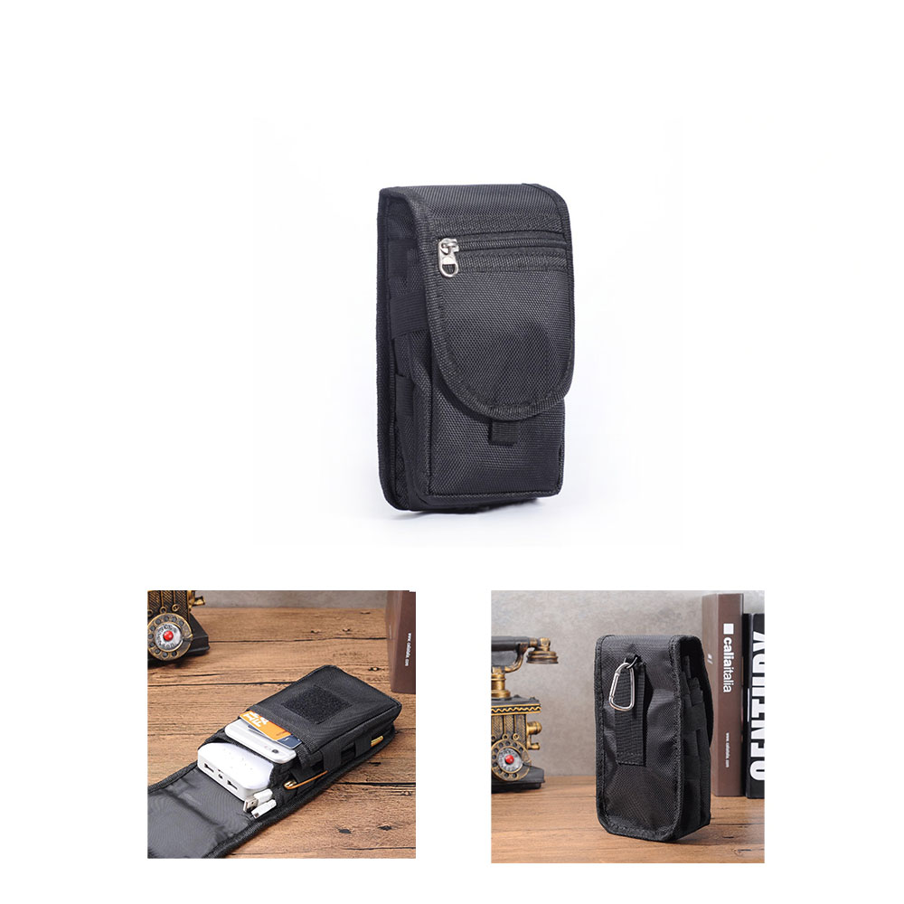 (200x110x30mm) Spritzwasserfeste iPhone 14 Plus Nylon Tasche mit Gürtelclip und Karabinerhaken - Schwarz