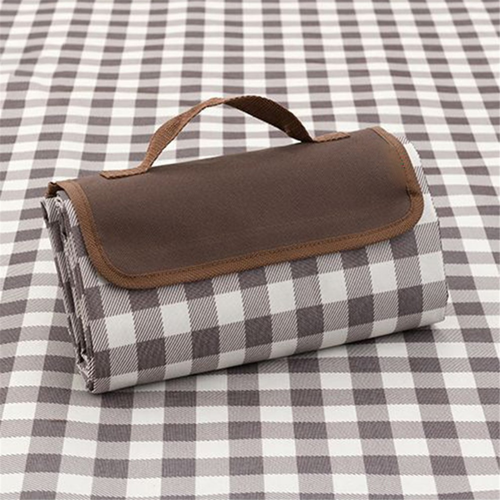 (200x145cm) Wasserabweisende Picknick Decke Outdoor Camping Matte Kariert - Braun / Weiss