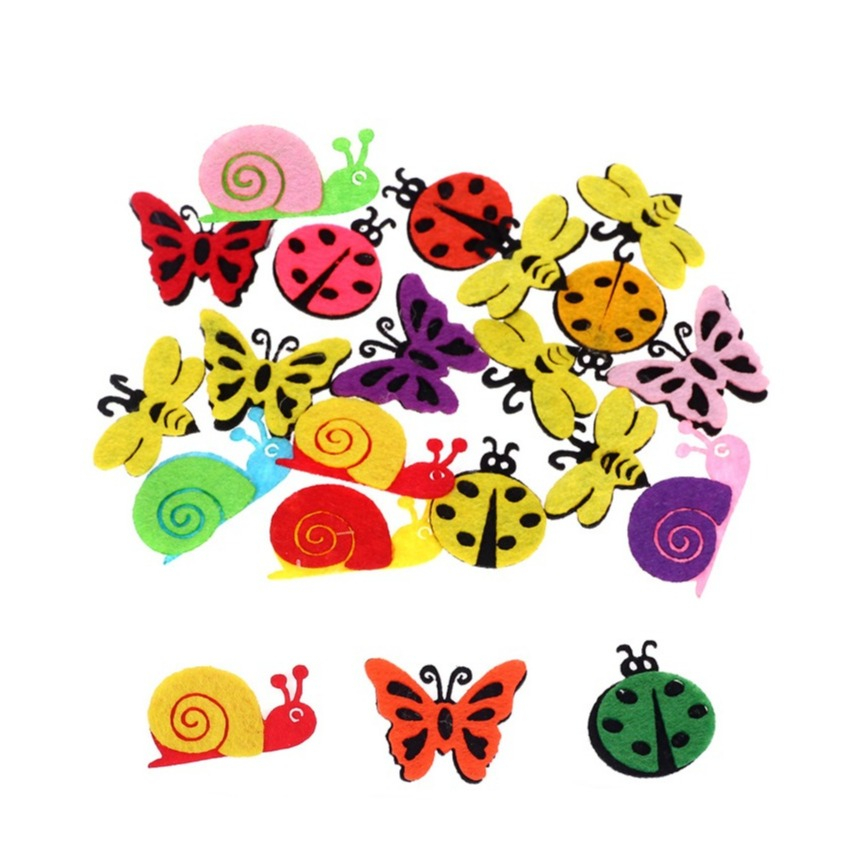 Bestelle dieses Set mit 20 verschiedenen Filz Figuren, egal ob als Dekoration auf Tischen, zum Schmücken eines Geschenkes oder Grusskarte, für ein lustiges Kostüm oder für do it yourself Deko zu Hause. Diese bunten Figuren sind dank den Frühlings Motiven wie Schmetterlinge, Marienkäfer, Biene etc. ein echter Hingucker und zum Basteln bestens geeignet.
