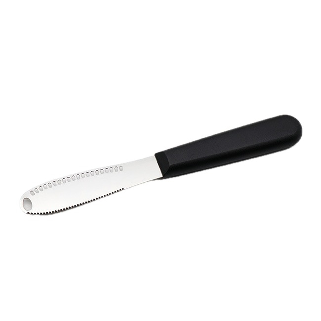 (21cm) Edelstahl Butter Messer Wiederverwendbares Streich Besteck Aufstrich Verteiler mit Loch Struktur / Zacken - Schwarz