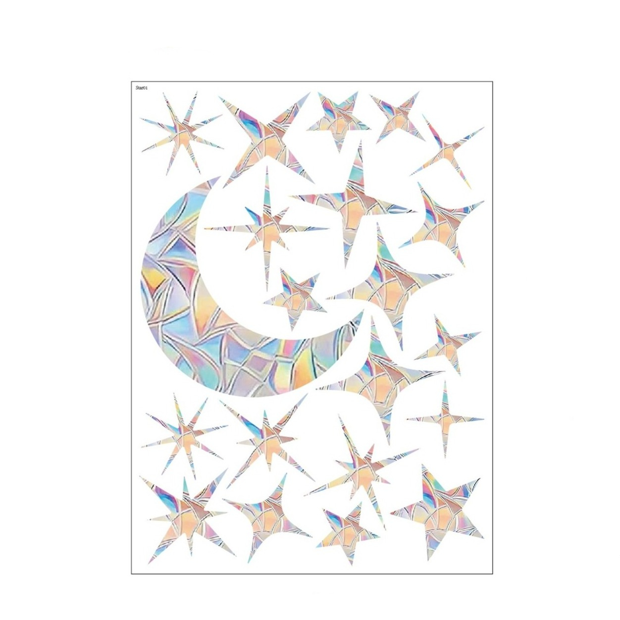 (21er Set) Holographische Fenster Folien Aufkleber Home Deko Prisma Suncatcher Sticker - Mond / Sterne