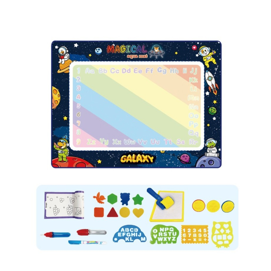 (22-tlg. Set) 118x88cm Magische Lern Spiel Zeichen Matte Wasser Maltafel für Kinder inkl. Formen / Schablonen / Stempel / Stifte - Assortiert