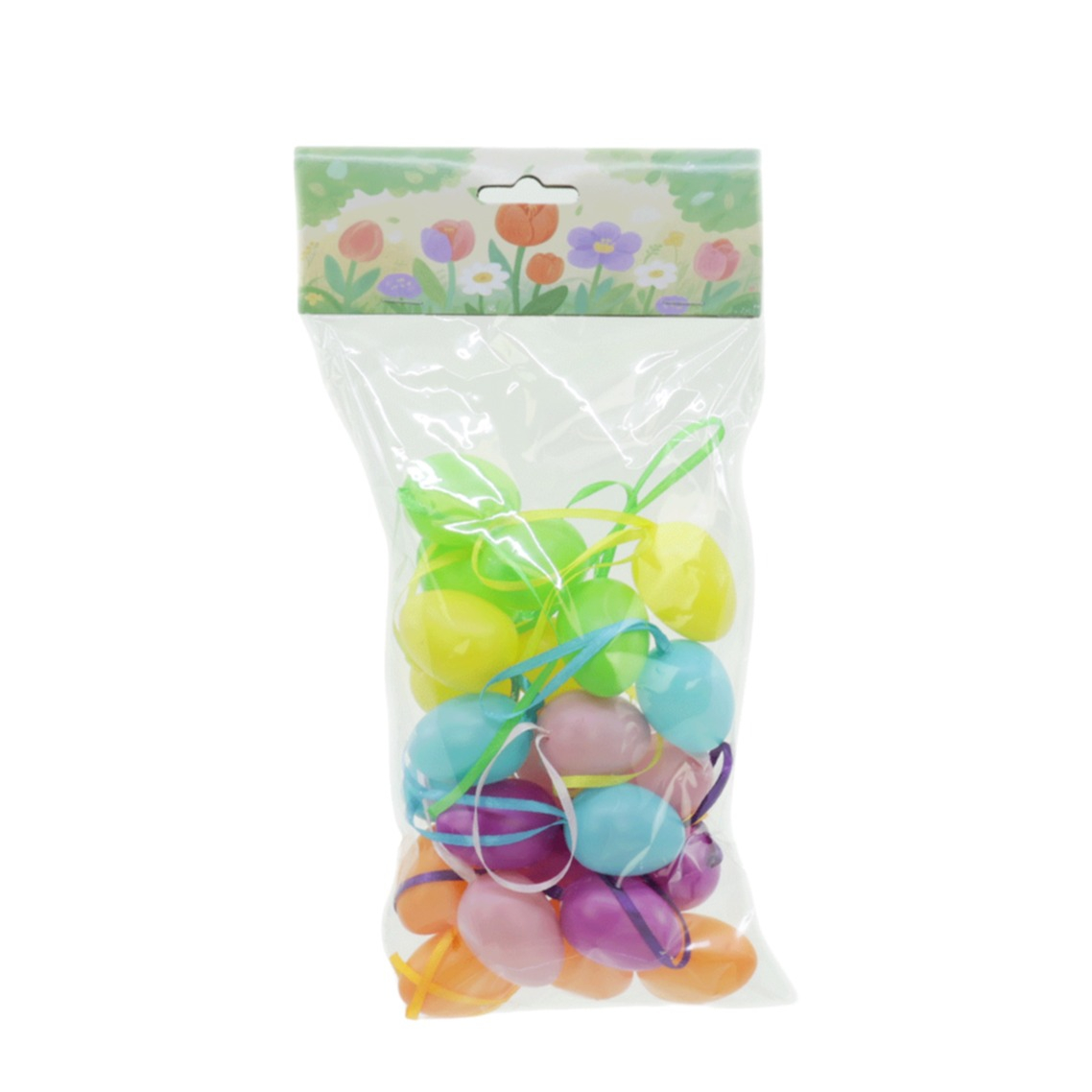 (24er Set) 4cm Ostereier Deko Eier Oster Accessoire mit Aufhängeband - Bunt