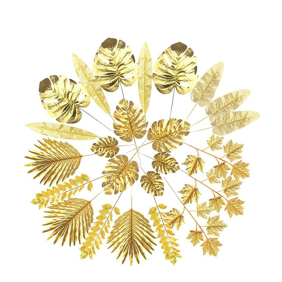 (24er Set) Deko Kunstblätter 7 verschiedene Blätter Arten für Kranz / Girlande / Blumenstrauss - Gold