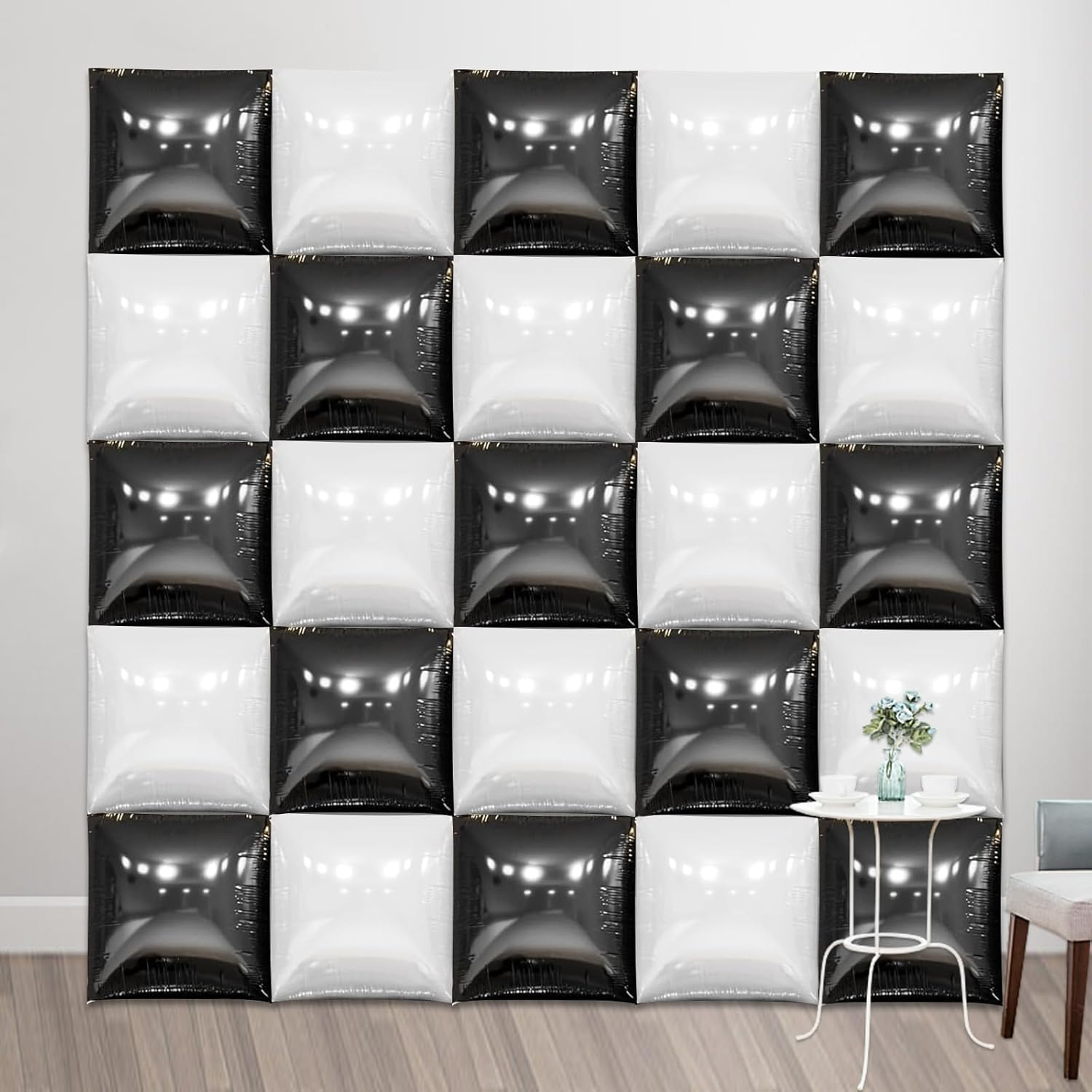 (25er Set) 47x47cm Quadratische Party Ballons Doppelseitiger Folien Luftballon Photo Booth Hintergrund Deko Foto Requisite - Schwarz / Weiss