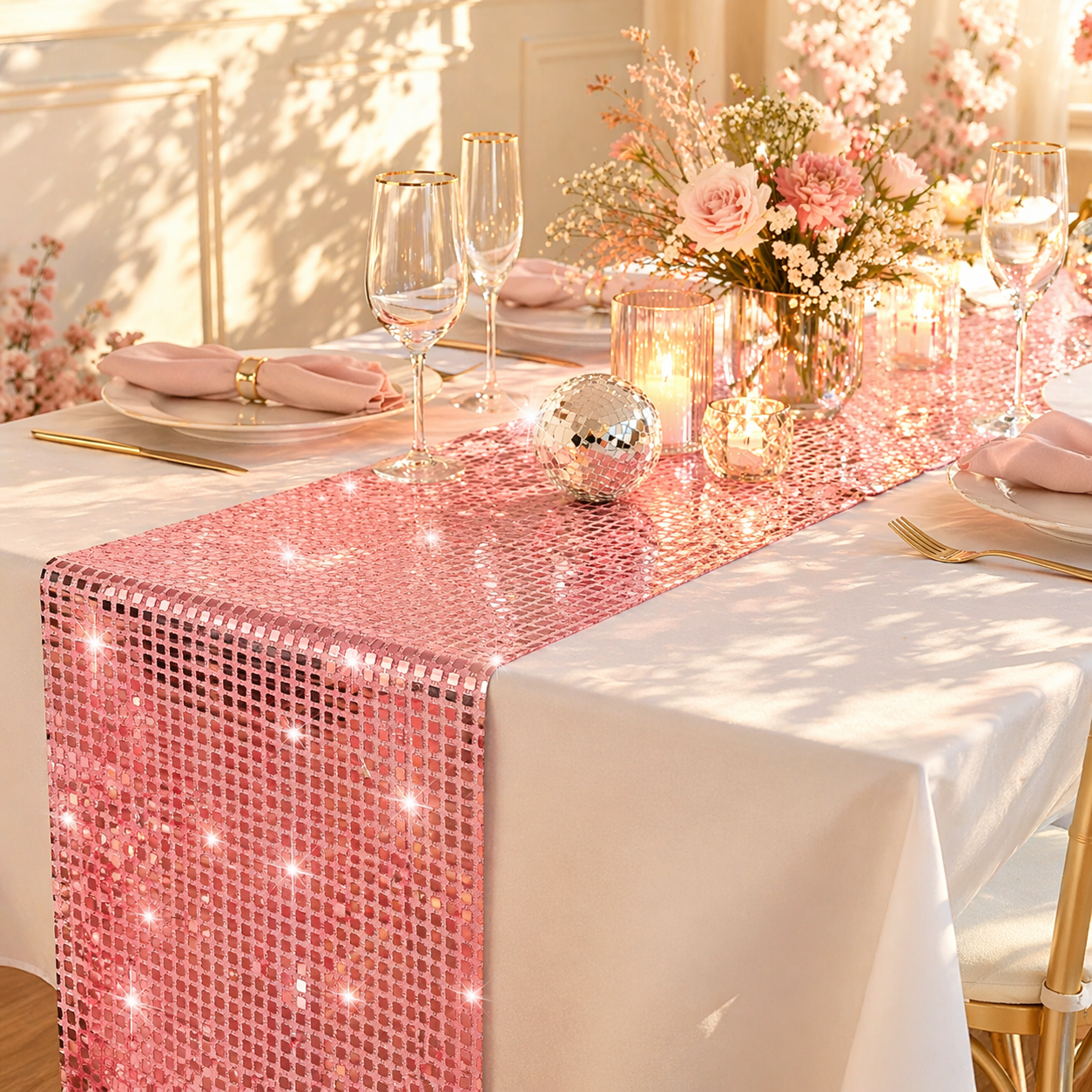 (270x30cm) Disco Tischläufer Glänzendes Party Deko Tischtuch - Roségold / Rosa