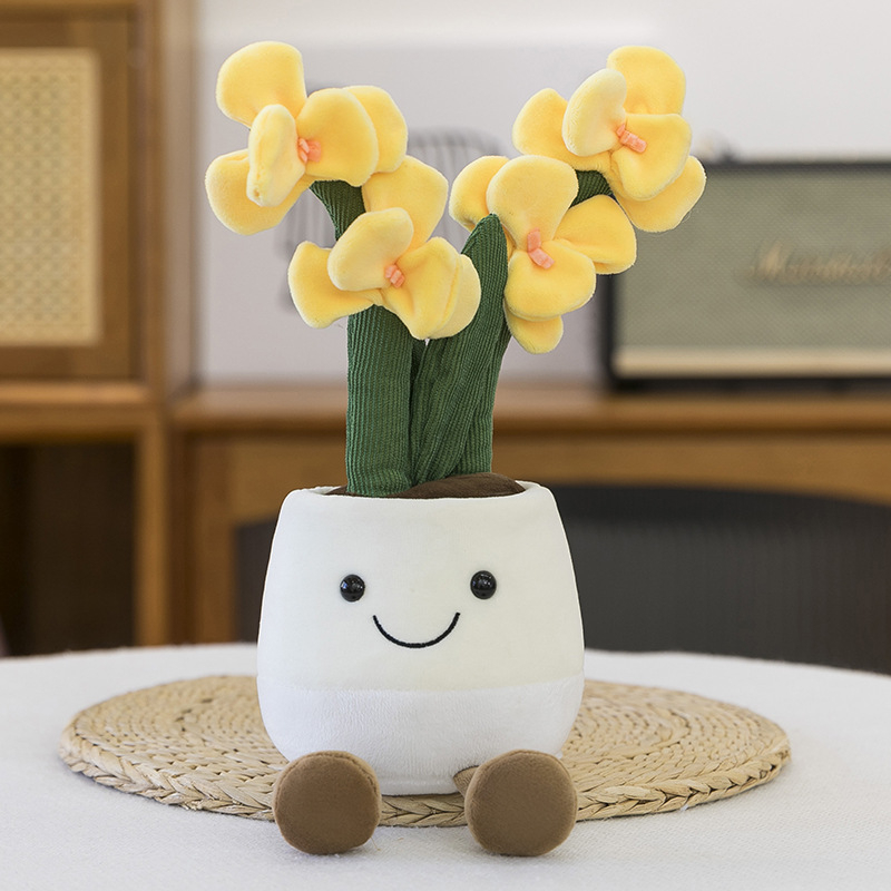(28cm) Kuschelige Plüschtier Orchidee Kinder Spielzeug Flauschiges Pflanzen Kuscheltier - Beige / Gelb / Grün