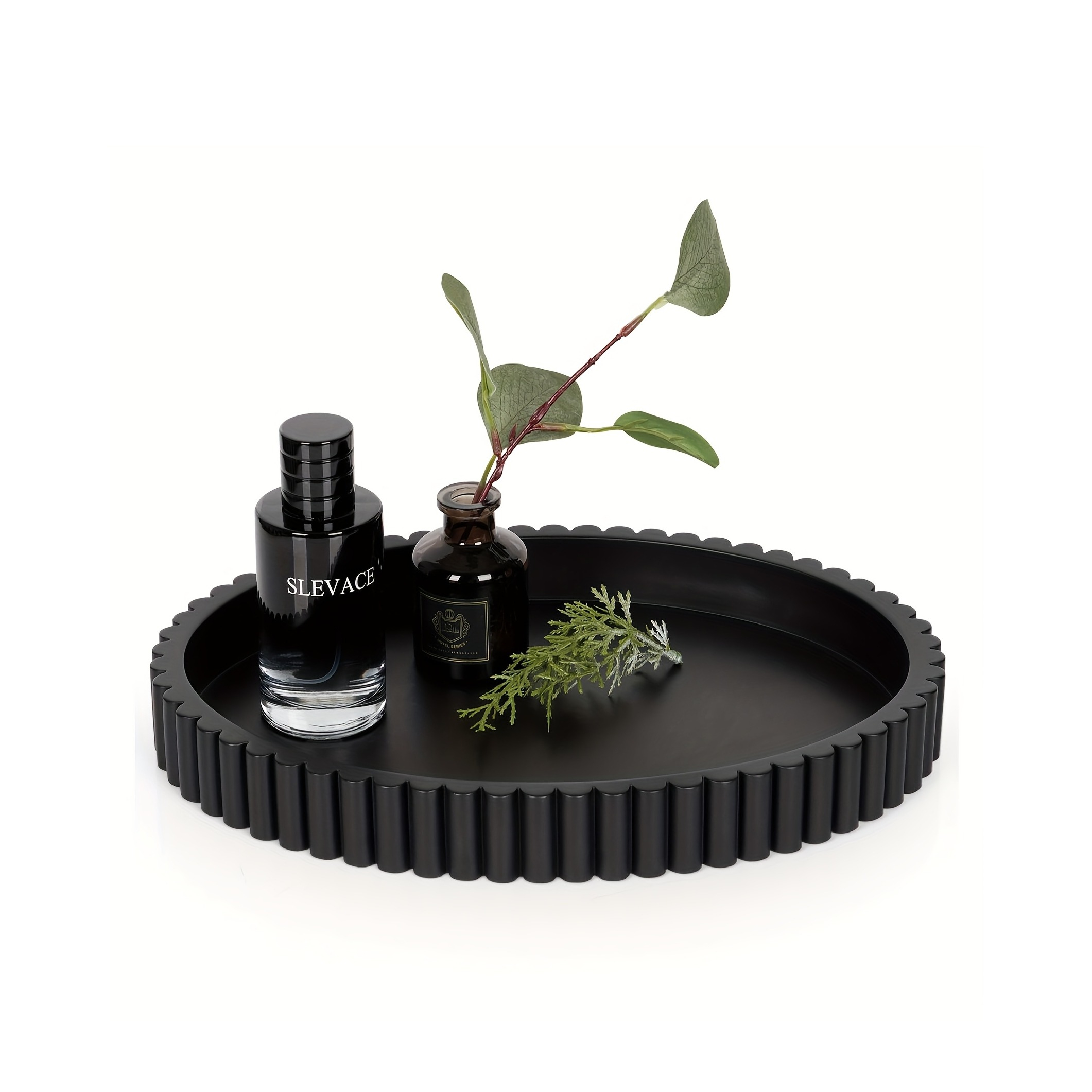 Die schlichte schwarze Optik sorgt dafür, dass sich das Tablett mühelos in verschiedene Einrichtungsstile integrieren lässt. Egal ob im Wohnzimmer, Badezimmer oder auf dem Schminktisch – dieses Accessoire setzt deine Deko gekonnt in Szene und bringt gleichzeitig Ordnung in deinen Alltag.