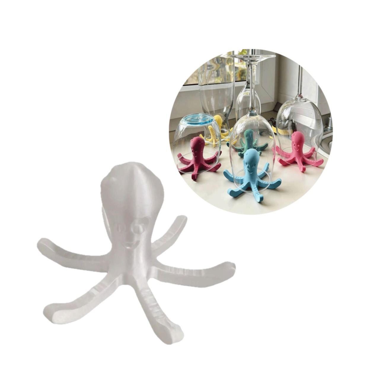 Mit dem Oktopus Abtropf Halter im praktischen 2er Set bringst du Ordnung und Farbe in deine Küche. Der kreative 3D Druck Tintenfisch sorgt nicht nur für einen Hingucker, sondern unterstützt dich auch beim hygienischen Trocknen von Geschirr wie Flaschen, Tassen oder Gläsern. Einfach aufstellen, Gefäss darauf platzieren und schon kann das Wasser sauber abtropfen.