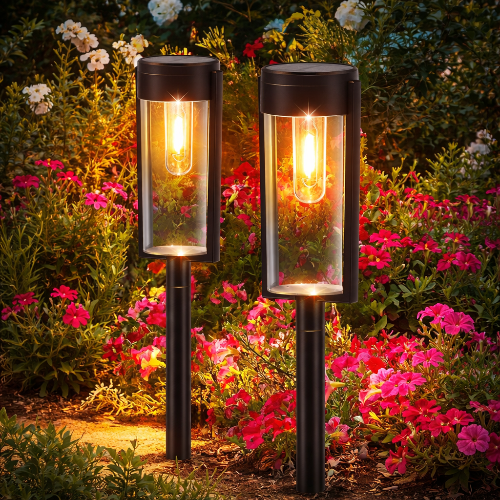 (2er Set) LED Solar Lampe Outdoor Gartenleuchte Laterne mit Glühbirne Wasserfest IP65 - Warmweiss