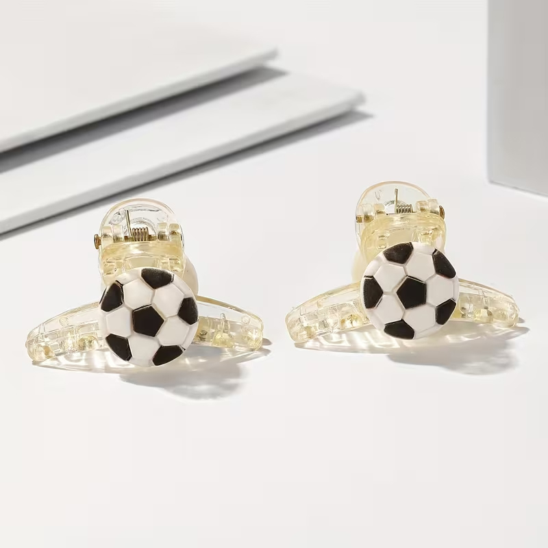 (2er Set) Mini Haarspangen Klammer Krallen Clips Haar Accessoire Fussball für WM / EM - Transparent