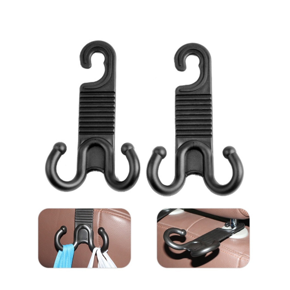 (2er Set) Universal Auto Kopfstütze Taschen-Organizer Haken Gepäckhalterung (bis 5kg belastbar) - Schwarz