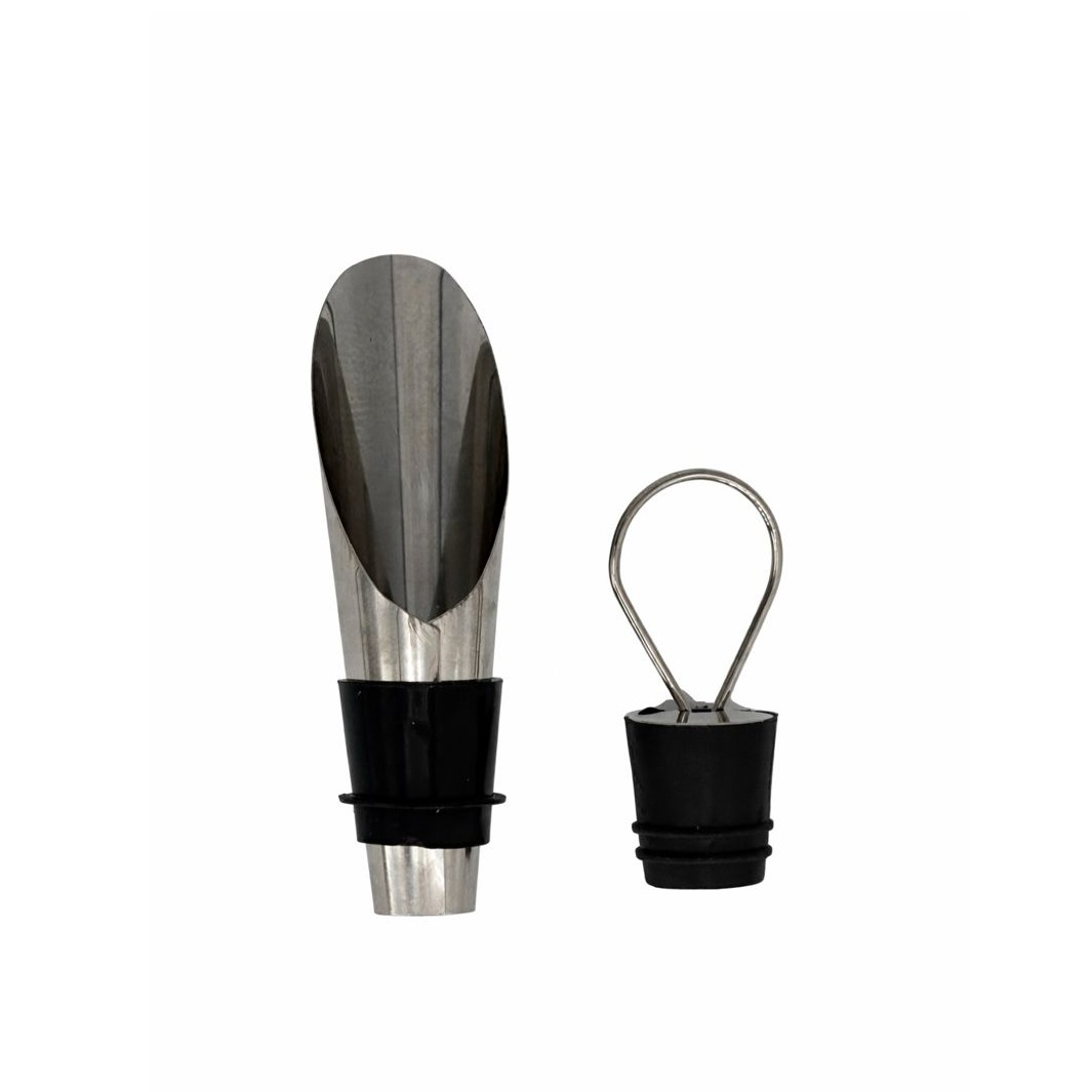 2in1 Auminium Wein Dekanter Aufsatz und Drop Stop Ausguss - Silber