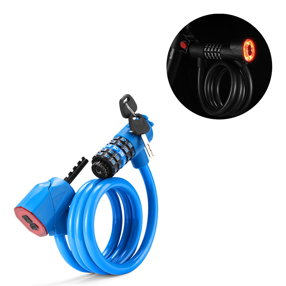 2in1 Fahrrad Schloss USB Velo Rücklicht 5-Stelliges Code Zahlenschloss + Halterung - Blau / Schwarz