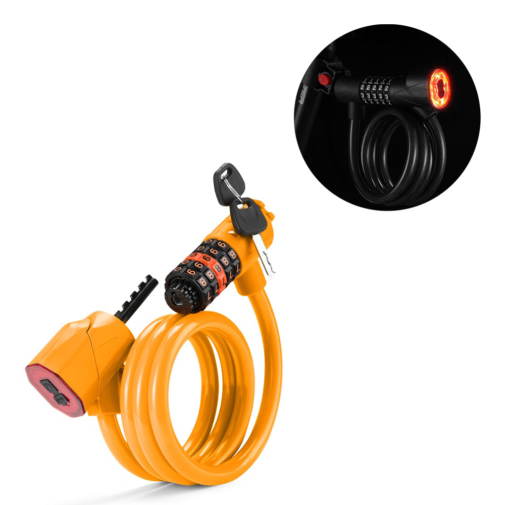 2in1 Fahrrad Schloss USB Velo Rücklicht 5-Stelliges Code Zahlenschloss + Halterung - Orange / Schwarz