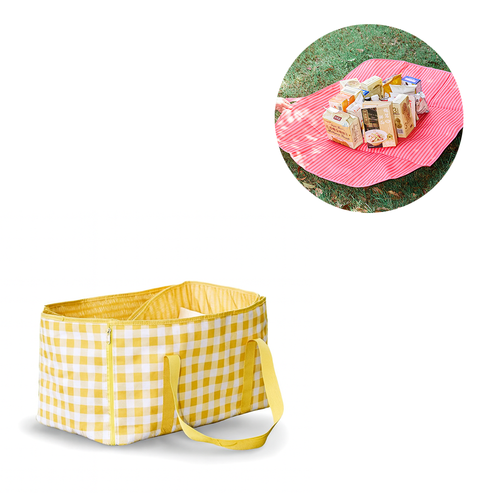 2in1 Oxford Thermo Kühltasche Outdoor Picknick Decke Camping Tasche mit Tragegriff - Gelb / Weiss