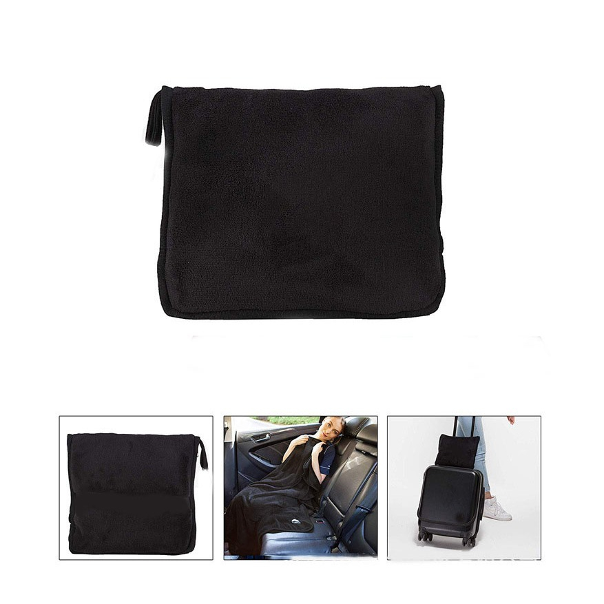 2in1 Reise Kuschel Decke Travel Kissen Bezug Nackenstütze - Schwarz