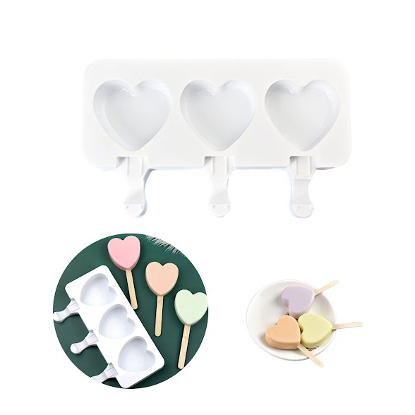 (3-fach) Silikon Eis am Stiel Form DIY Glacé Behälter Eiscreme Form - Herz