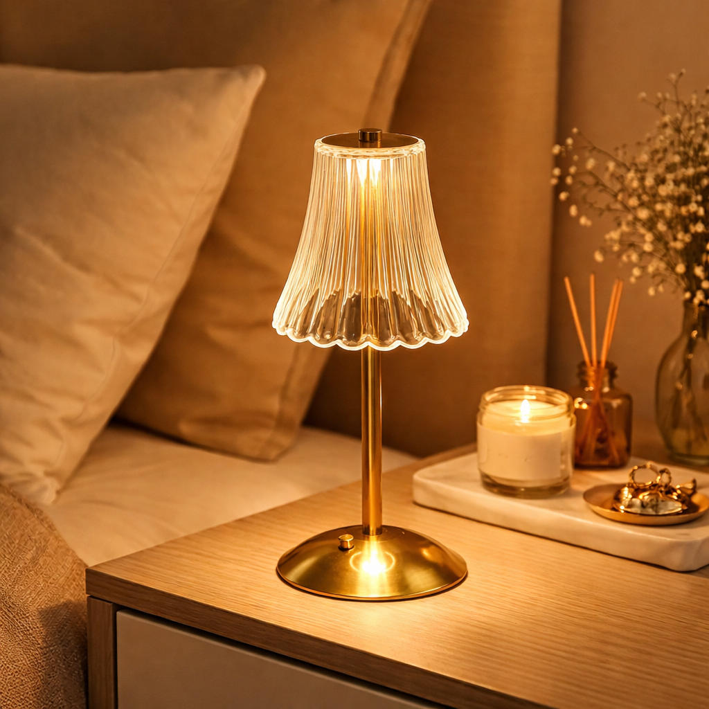 Mit dieser eleganten LED Nachttisch Lampe schaffst du im Handumdrehen eine angenehme Atmosphäre in deinem Zuhause. Ob im Schlafzimmer auf dem Nachttisch, im Wohnzimmer oder als stilvolle Deko – diese Beleuchtung sorgt für ein warmes und gemütliches Ambiente.