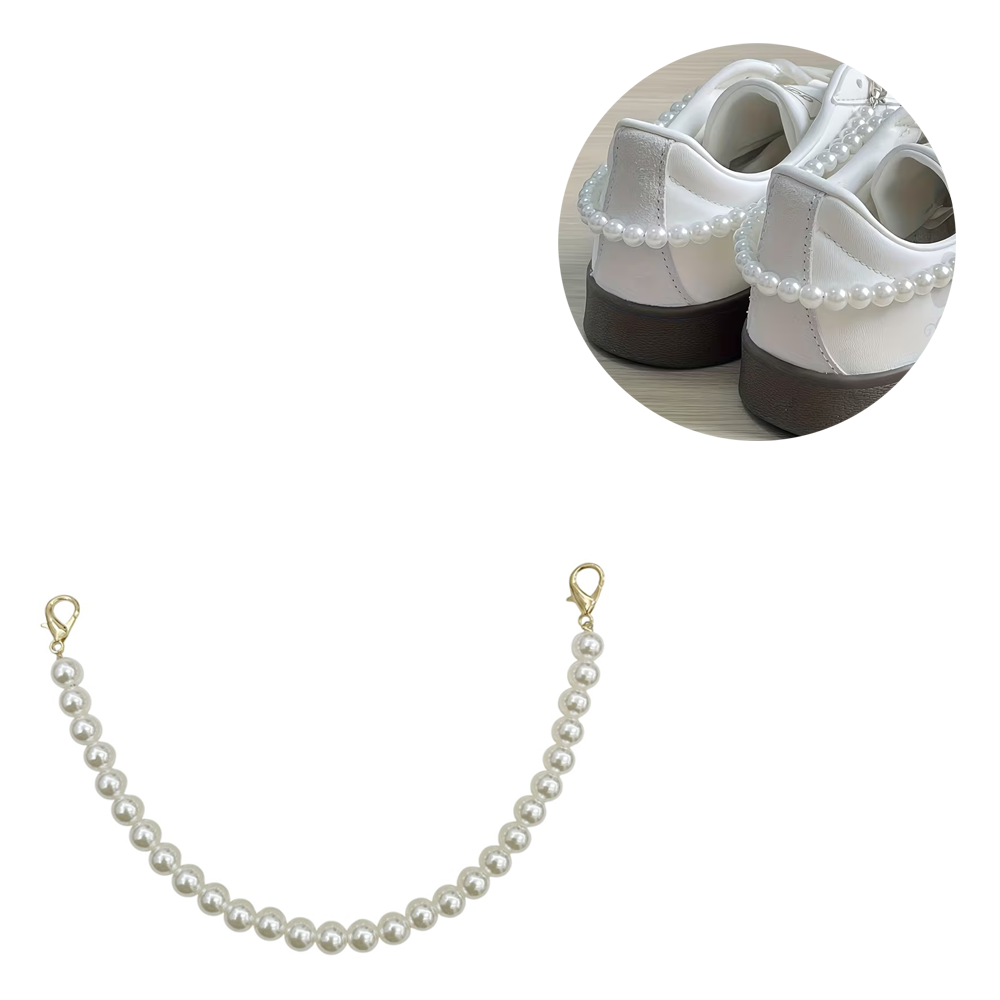 (30cm) Perlen Schuh Kette Accessoire Sneakers / Boots Anhänger - Weiss