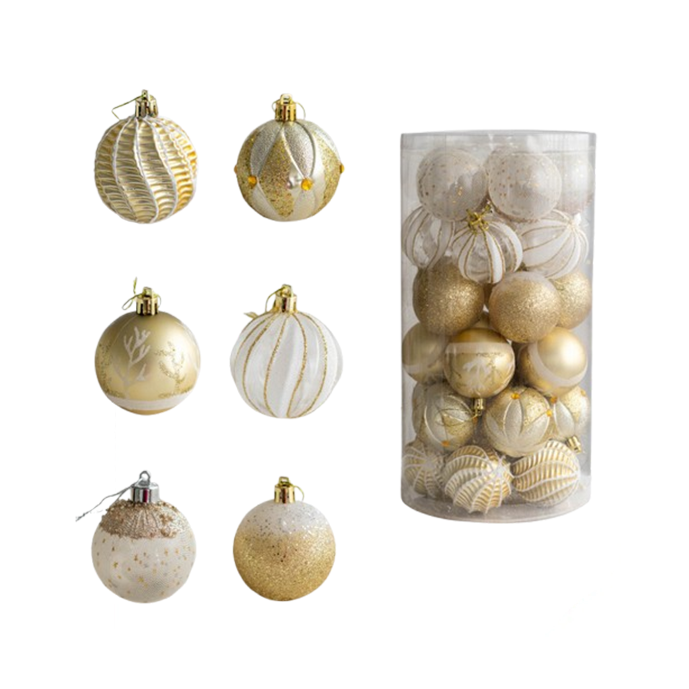(30er Set) Ø6cm Christbaum Schmuck Glitzer Weihnachtskugeln Tannenbaum Aufhänger Home Deko - Gold / Weiss